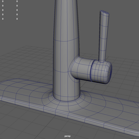 For the first assignment of the class, we were tasked to model a realistic faucet using subdivision modelling in Maya. We were given reference images to work off of, and tasked with creating, texturing, and rendering the model ourselves. I began by using primitive geometry to create a base shape and topology, and used the smooth preview in maya to adjust the edge loops.