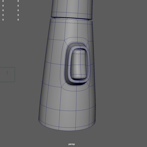 Once I got the basic geometry in place, I added details, such as the interior of the nozzle. Once I was happy with all of the geometry, I switched to smooth preview mode to ensure that all of the topology was smooth, flowed well, and kept its shape.